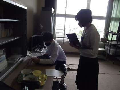 今回のテーマは「知って得する、雑学クイズ」でした。ただクイズを出題するだけでなく、答えの発表の時に「ドゥルルル・・・」とロール音を発声したり、問題文を抑揚を付けて話すなど、とても楽しい時間を作り出してくれました。「黙食」しているけれど笑顔になっている大中生の姿がありました。