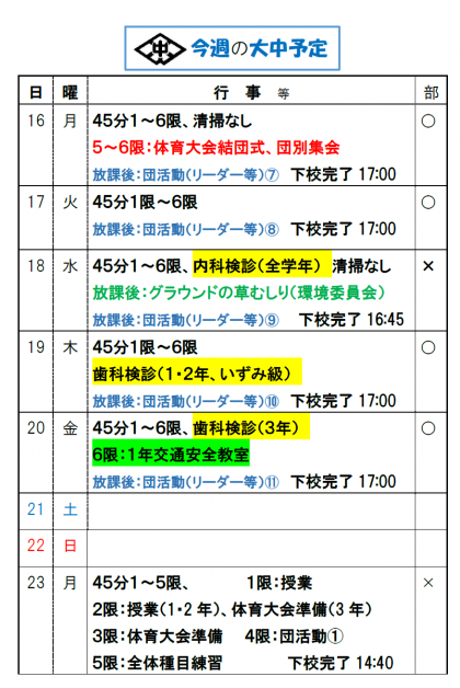 16日(月)は、体育大会の結団式です。全校あげての体育大会の活動が本格化します。
