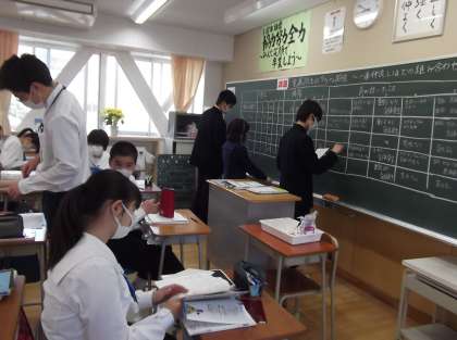 今朝も、20名あまりという多くの大中生が集まり、自主学習に励みました。特に1年生は、学年全体の約3割の生徒が参加しています。自主学習の輪が広がり、大中生にとって自主学習することが「当たり前」になったらいいなと思います。