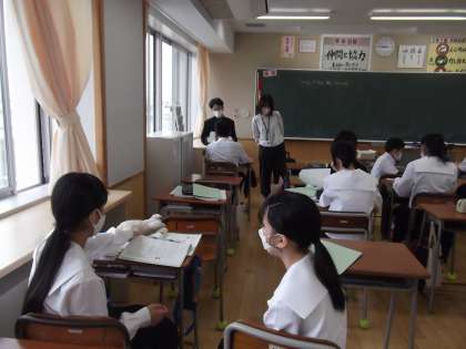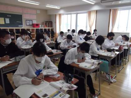 1組は英語、2組は社会の授業です。1年生は、みんながとても真剣に、集中して授業に取り組んでいるのが印象的です。がんばっています。