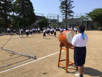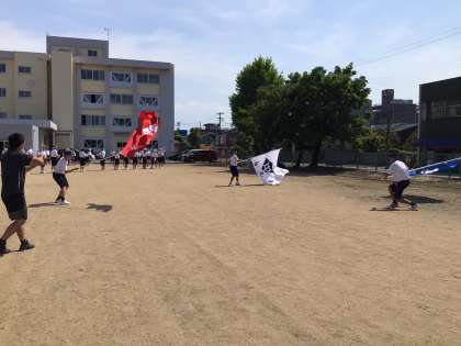 団活動が始まりました。各団の旗手は、旗の動きを徹底的に研究し、練習しています。団演技も、全体の流れで練習できるようになりました。がんばろう!大中生!!