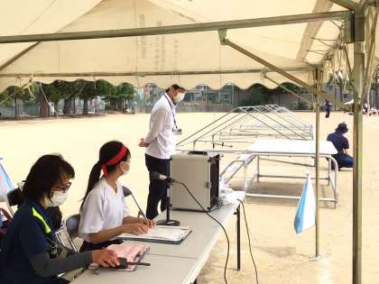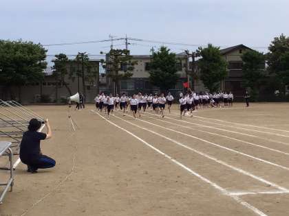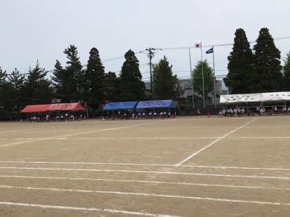 曇り空で風は少し強め の下、明後日に控えている体育大会の予行練習を行っています。係の動きの確認がメインです。明後日が、今日より素敵な天候になったらいいなと思います。