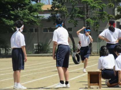 各学年の種目です。1年は「台風の目」、2年は「大中トライアスロン」、3年は「タイヤ引き」です。