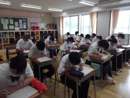 今日は、20名近くの大中生が参加し、自主学習に励みました。朝の15分間の学習が定着してきたメンバーが、各学年にいます。また、これからの皆勤を目指してがんばっている人もいます。大中に、学習の風が爽やかに吹き始めている感じがします。