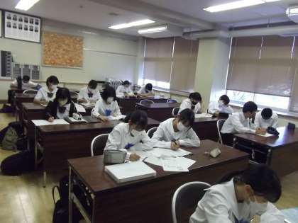 今日も多くの大中生が寺子屋に集まり、自主学習に励みました。特に1年生は、数学で小テストがあるようで、正負の数の計算問題に取り組む生徒が多かったです。(写真上)