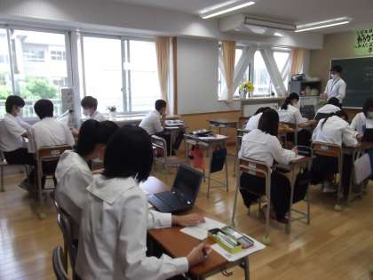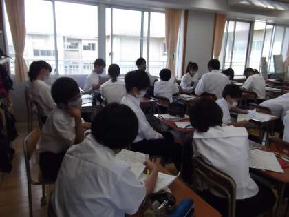 2−1の英語では、ペア学習で英語の力を高めていました。(写真中)