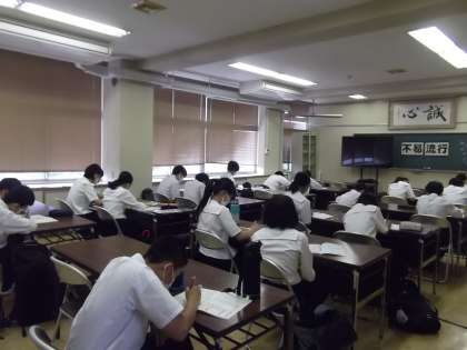 さて、今朝も大中生が寺子屋に参加し、自主学習に励みました。素敵な姿がたくさん見られます。ここでも大中生のがんばりが見られます。(写真上)