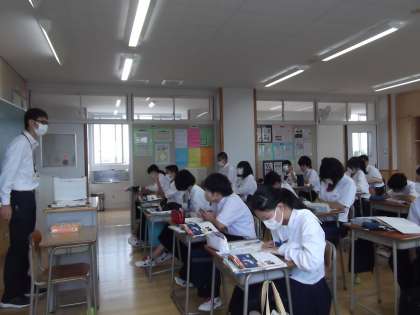 3−1では、数学で√の大小を比べる学習をしています。「さすが3年生」という集中力でした。