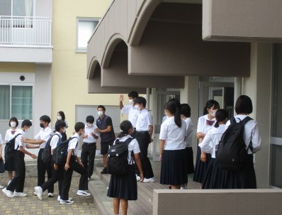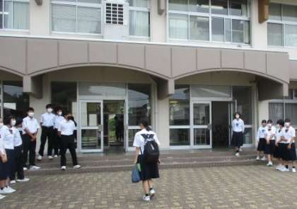生徒玄関前でのあいさつや、各教室の入り口でのあいさつなど、様々な場面をとらえて、あいさつをつなげていこうとの思いで活動を始めました。