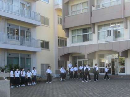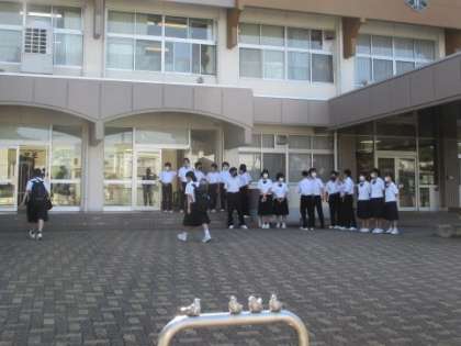 今日は、1年生が玄関前に立ち、元気いっぱいのあいさつを交わしています。