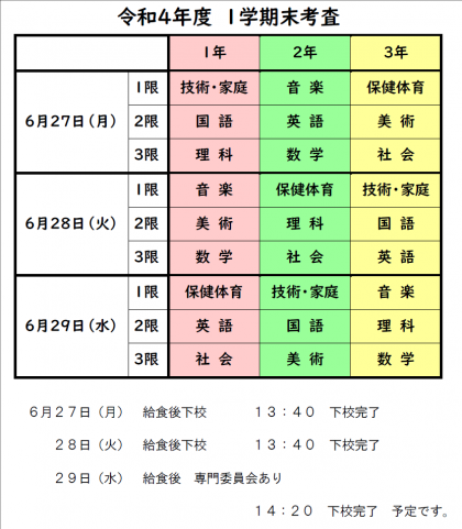 1学期の学習の振り返りとなる、1学期末考査を行います。