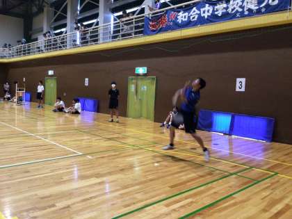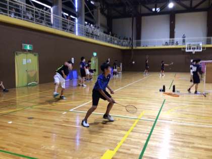 富山市民体育大会での、男子バドミントン部の様子です。本校からはシングルスに3名、ダブルスに3組出場し、熱戦を繰り広げています。気迫のこもった声を響かせ全力で取り組む姿は、とても輝いています。
