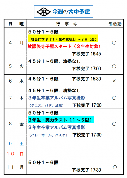 また、3年生は放課後の寺子屋が始まります。ふるって参加しましょう。Let's study!!3年生!!
