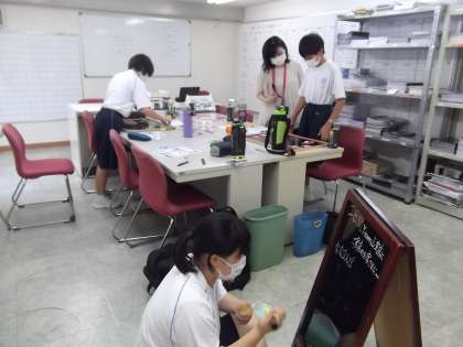 「今日は7月23日、24日のイベントに向けたPOP作りをしていました。マニュアル通りではなく、1から自分たちで作るので、楽しいながらもアイディアに苦心している生徒たちの姿がありました。店長さんからは、生徒たちは元気がよく逆に学ぶところがあるとおっしゃっていただきました。」