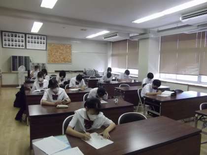 しばらく休止していた大中寺子屋を、今朝から再開しました。どのくらい大中生が集まるか少し不安もありましたが、それはすぐに払拭されました。各学年から大中生が集まり、10名を超えるメンバーが自主学習に励みました。これからも、学習の積み上げを大切にしていきましょう。(写真上)