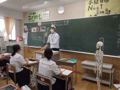 3年生は理科で、生物の進化について学習していました。今回は大川先生がダーウィンになって、標本模型を効果的に使いながら、楽しく授業を展開していました。(写真下)