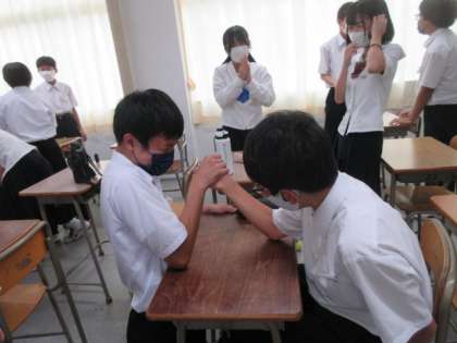 幼い頃の写真を見せて、誰か当てるゲームをしたり、腕相撲大会を行ったり、とても楽しい時間を過ごしました。クラスの仲がより深まりました。