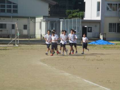 日中は気温が高くなるので、まだ比較的過ごしやすい時間帯に駅伝の練習をしています。みんな声を掛け合いながら、顔晴っています。