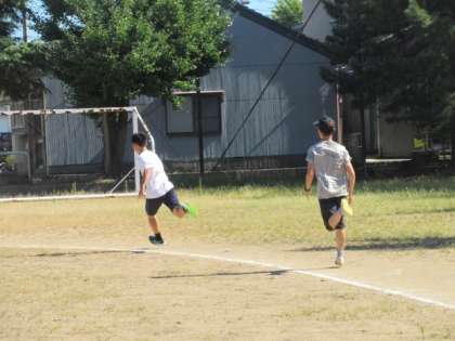 駅伝部では、グラウンド半周を全速力で走るトレーニングをしていました。顧問の先生も一緒に走っていました。みんなヘトヘトになりながらも、顔晴っていました。