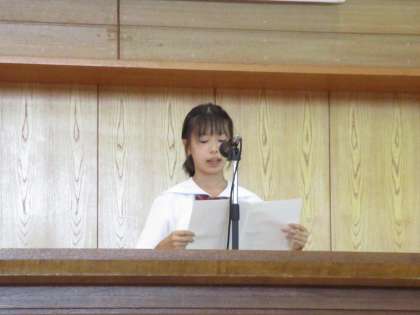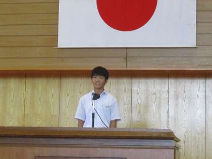 3年代表は、最上級生としての模範となる行動をとることの大切さ、卒業後の進路選択を視野に入れて、学習への取り組みをこれまで以上に大切にしたいこと、人として一回りも二回りも大きく成長したい思いを熱く語りました。