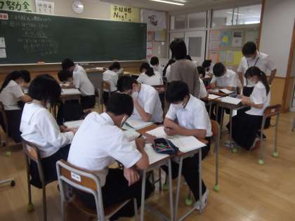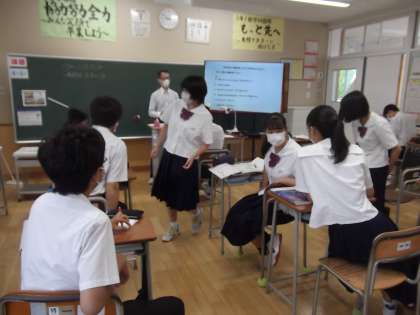 グループになって、二次方程式の課題に取り組んでいました。「さすが3年生」という集中力でした。