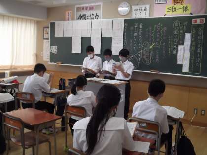 文学的文章を読む中で、モヤモヤしたところを追究し、根拠・理由を添えて発表しています。