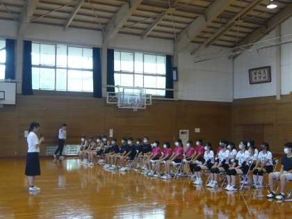 9月16日(金)から始まる富山市中学校新人大会に向けて、壮行会を行いました。生徒会長からの応援メッセージを受けた後、選手一人一人が大会の意気込みを語りました。