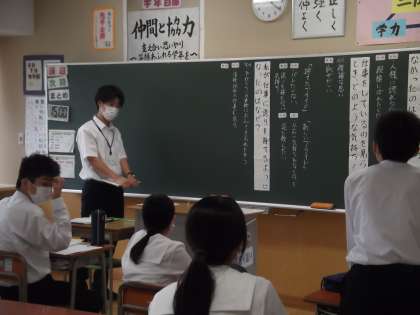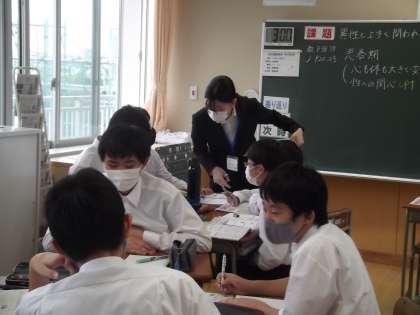 数学・保健の教育実習を行っていた2名が、今日で実習を終えます。教職に就くことへの決意と責任感を、より一層高めてくれたと思います。長期間、よくがんばりました。
