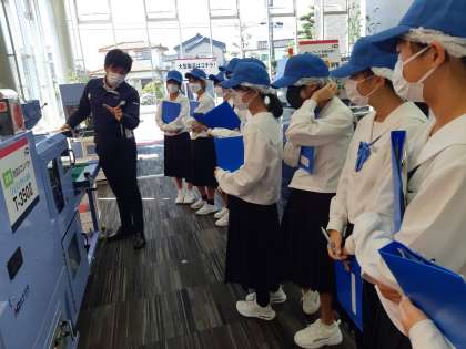ハナガタさんの様子です。生徒は、シュリンク包装自動機械に驚いていました。