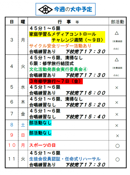 家庭学習&メディアコントロールチャレンジ週間10/3(月)〜9(日)