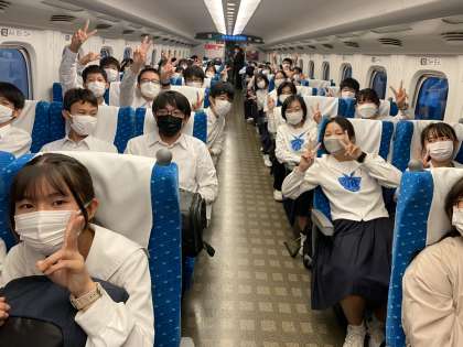 平和学習を終え、大阪に向かって新幹線に乗車しました。大阪では、お好み焼きの夕食が待ってます。