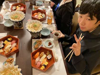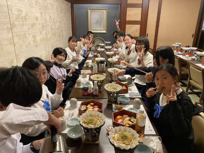 午前の活動を終えて、順次昼食会場に集合しています。午後の活動に備えて、たっぷりと栄養を摂ります。みんな笑顔です。