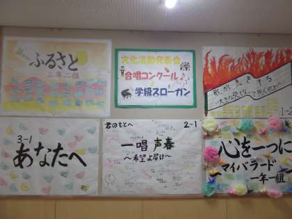 10/22(土)文化活動発表会での「合唱コンクール」のステージが完成しました。校内の雰囲気も、22日に向けて盛り上がっています。