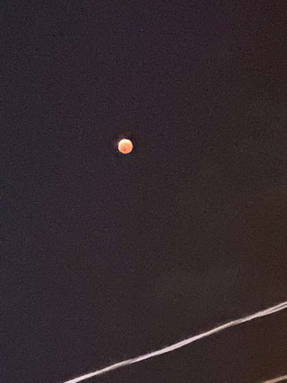 本日(11月8日)夕方から部分月食が始まり、19時59分に皆既月食となりました。素敵な天体ショーに出会うことができ、ワクワク・ドキドキしました。スマートフォンでの撮影なので、ちょっとブレた画像になりましたが、幻想的な様子は伝わったでしょうか?