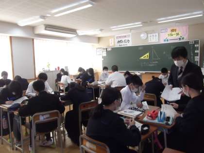 各クラスでは、工夫された授業が展開されており、生徒が自主的に学習を進めたり、意欲的に参加したりする姿が多く見られました。どのクラスも、良い雰囲気です。