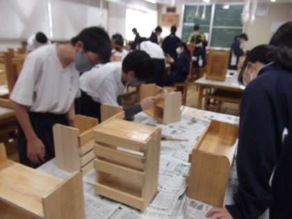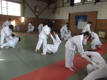 家庭科の調理実習(ホワイトシチュー)、技術科のラック作り、保健体育科の柔道の様子です。大中生は、生き生きと授業に臨んでいます。