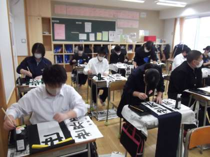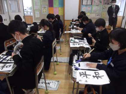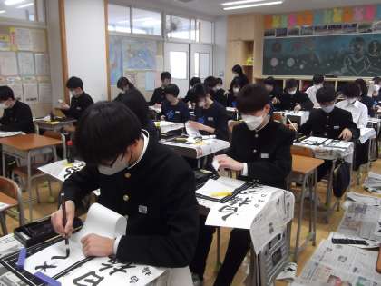 今日の6限目は、全校一斉に書き初めの練習をしました。