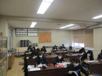冬休み初日の寺子屋には、3年生を中心に、約20名の生徒が参加をしています。時間を計りながら過去の入試問題に挑戦したり、2学期に学んだことを振り返ったり、それぞれが課題意識をもって取り組んでいます。がんばろう、大中生!
