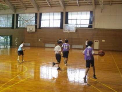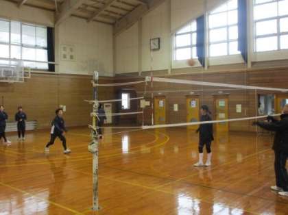 体育館では、バレーボール部とバスケットボール部が活動に取り組んでいます。とても寒い体育館ですが、大中生の熱気があふれています。顧問や部活動ボランティアの指導の下、基礎・基本を確認しながら練習に取り組んでいます。[写真 上・中]