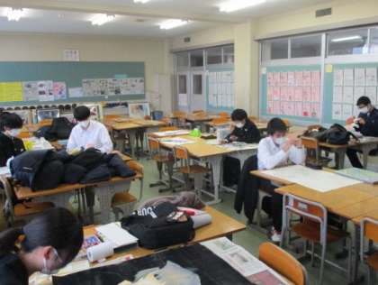美術室では、美術部が活動に取り組んでいます。各自のテーマに沿って、絵画や粘土による立体作品の制作にじっくとりと取り組んでいます。[写真 下]
