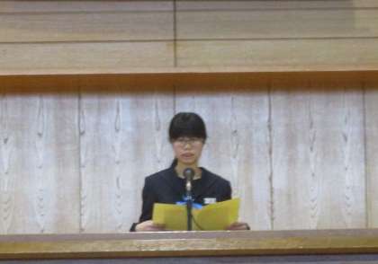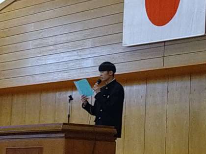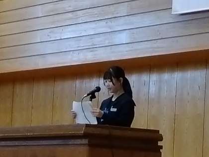 2年生代表は、これまでの生徒会での経験から、挑戦することの大切さ、やりたいことを実現するために努力すること之大切さについて話しました。