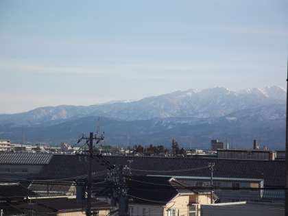 昨日・今日と、この時期にしては富山らしからぬ(?)好天の日を迎えています。上の画像は、本校4階の1年1組前廊下から撮影したものです。