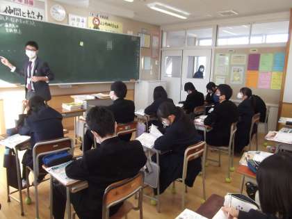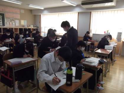 大中生は、この天候以上に清々しく授業に臨んでいます。1−1は社会科、1−2は数学科と、それぞれの学級担任の授業が行われています。