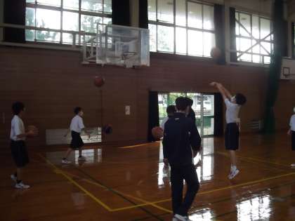 体育の土井先生がスキー大会の役員を終え戻ってきたので、3学期の体育が今日からスタートしました。1年生は、バスケットボールに取り組んでいます。