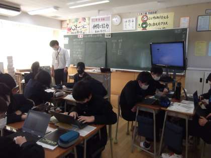 1−1は理科、1−2は体育、2−1は多目的室で理科の授業に臨んでいます。