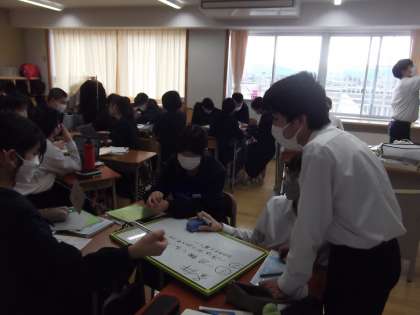 大中生は、活気あふれる授業を展開しています。1−1は体育、1−2は理科です。