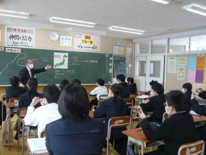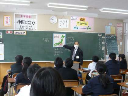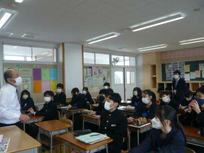 「日本列島の成り立ち」をテーマに、校長先生の特別講座が1年生で開講されました。生徒は生き生きとした表情で、校長先生の話に集中していました。
