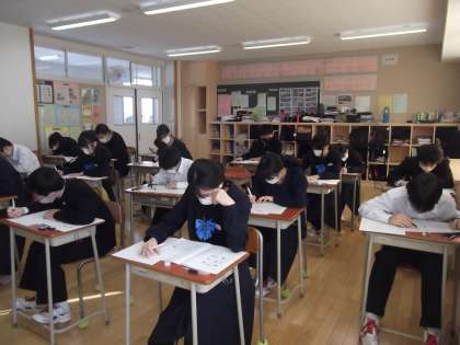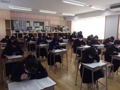 1・2年生は、確認テストをしています。顔晴ろう!大中生!!