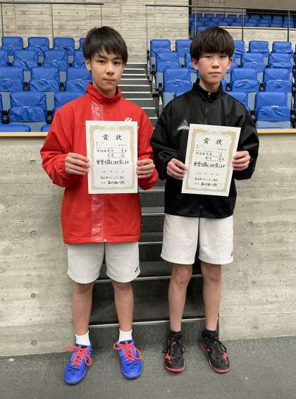 2月5日(日)に行われた富山ジュニアバドミントン選手権大会男子ダブルスの部(2部)で、松嶋葵生・北島向 組が準優勝に輝きました!
