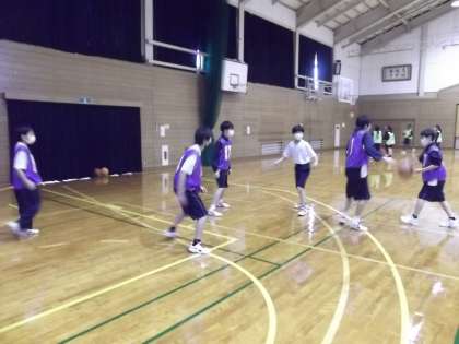 1−1は体育で、バスケットボールに取り組んでいます。一人一人が向上心をもって臨んでいるのが伝わってきます。